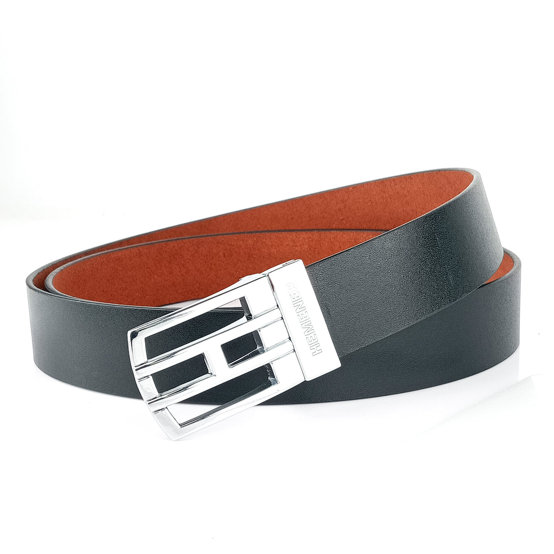 Hemener Men Alloy Buckle Black Dark Brown Reversible Leather Belt