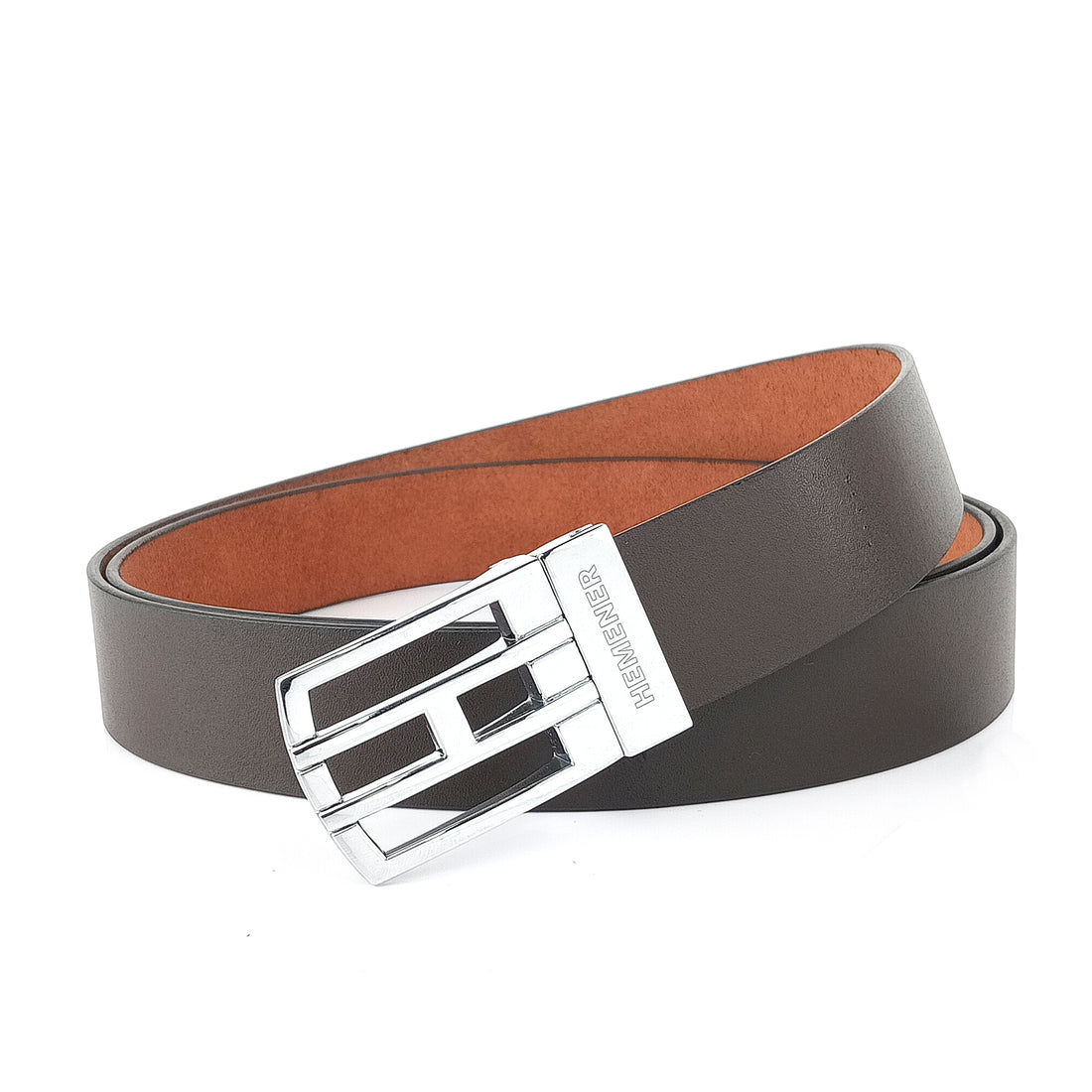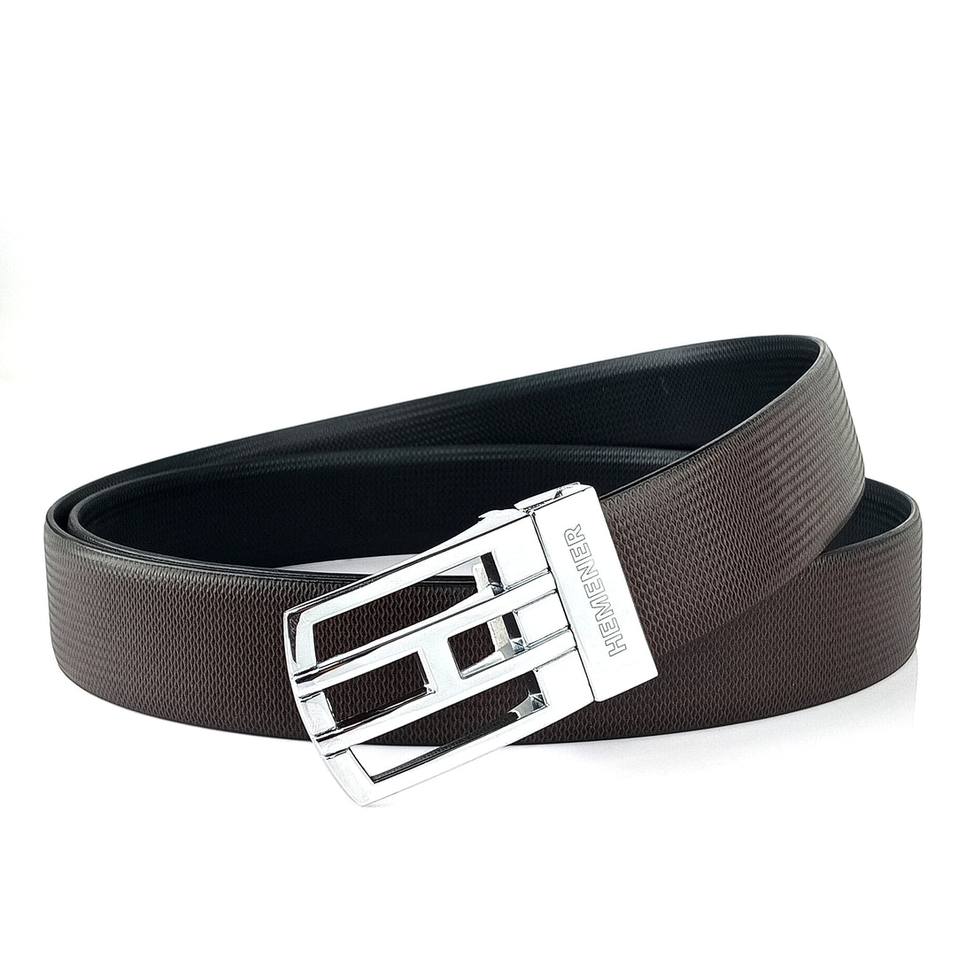 Hemener Men Alloy Buckle Black Dark Brown Reversible Leather Belt