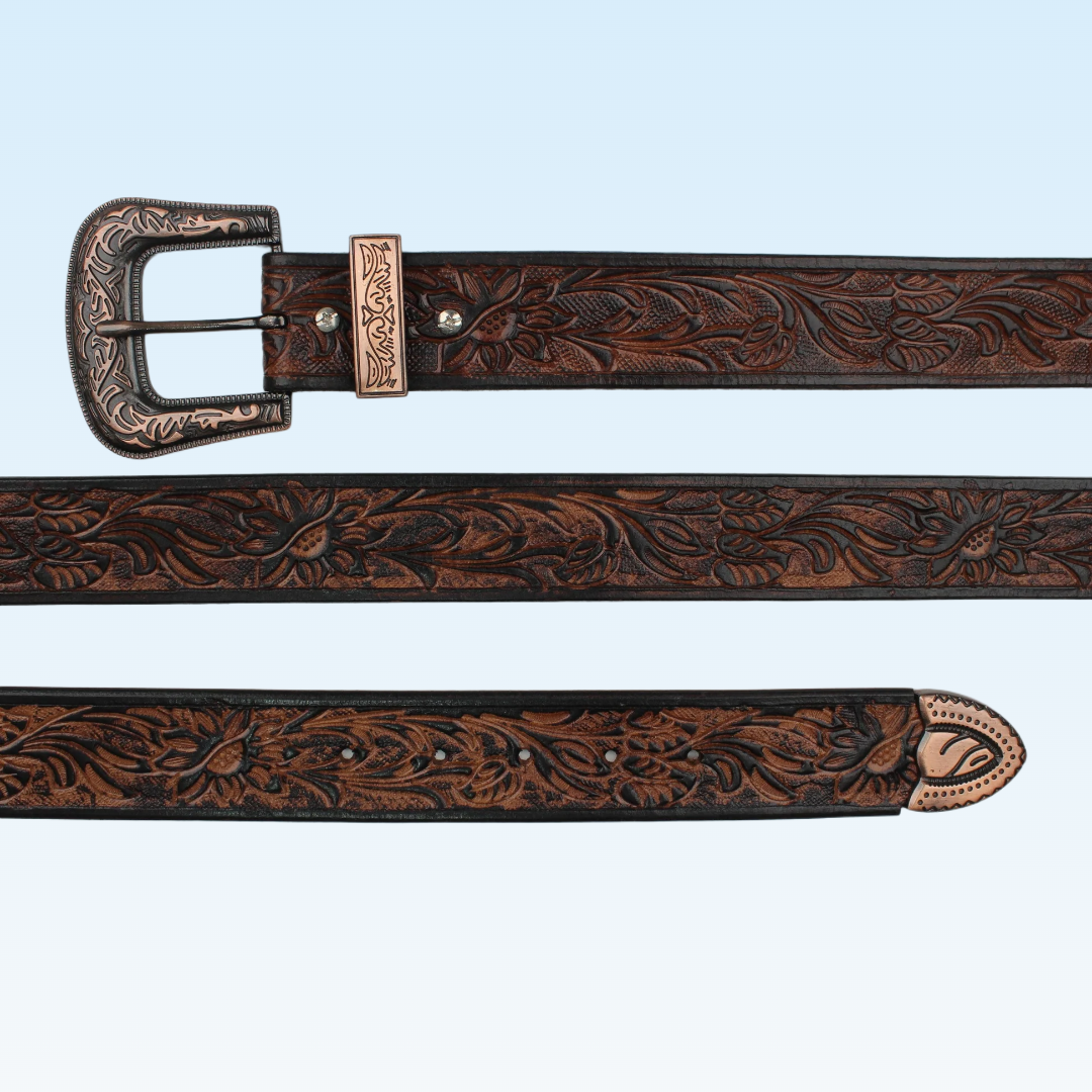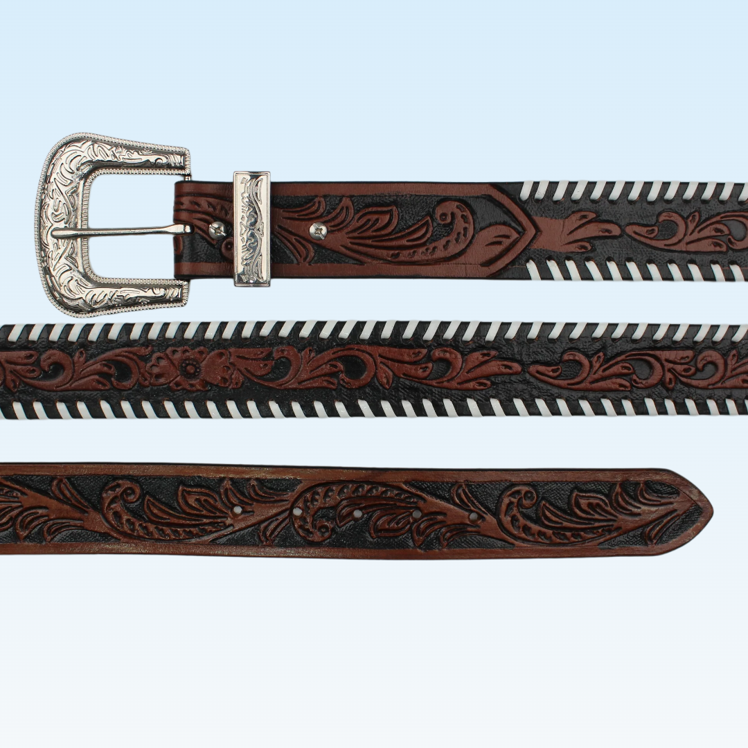 Genuine Leather belt for Men featuring high quality engraved Metal buckle and Carved Leather strap. Casual...