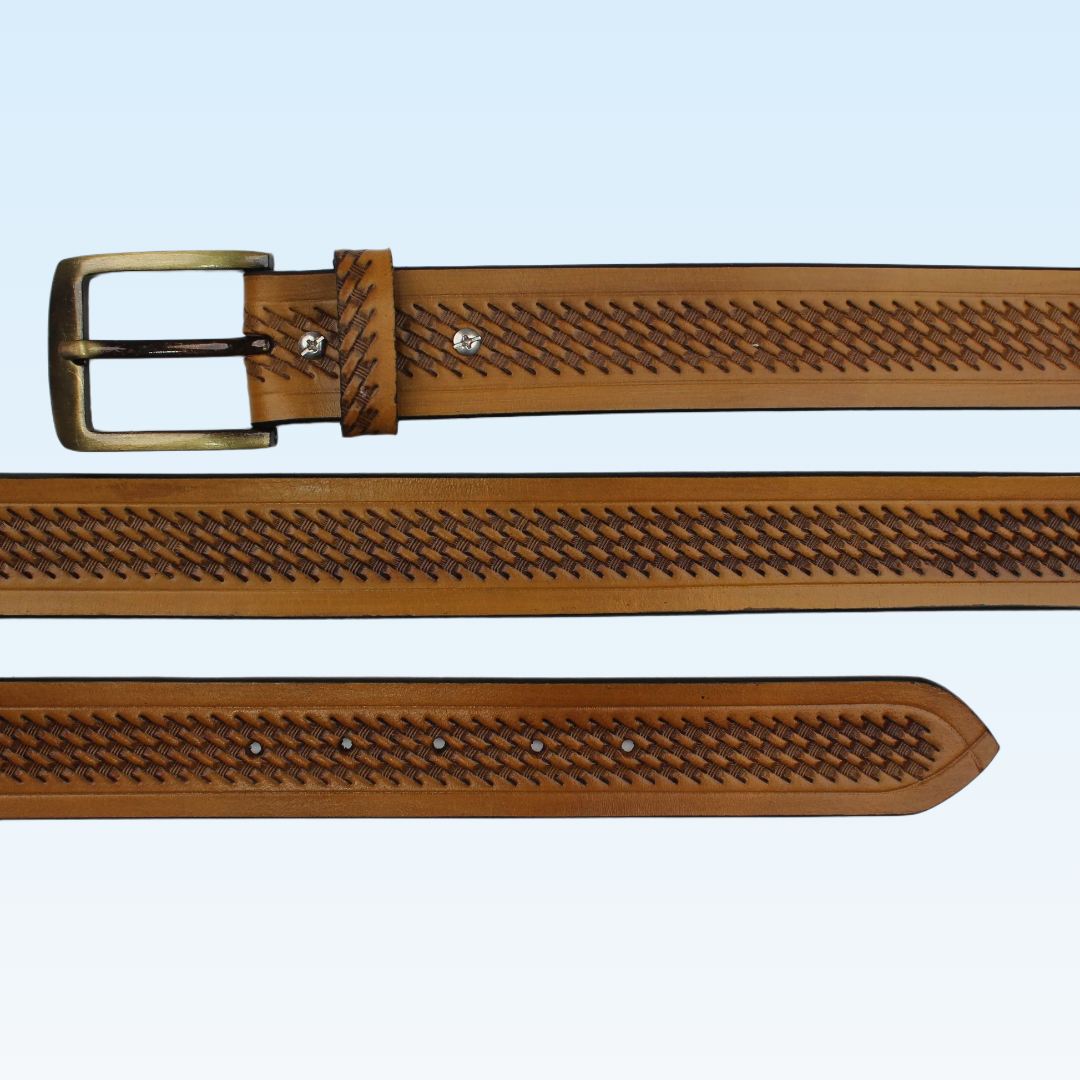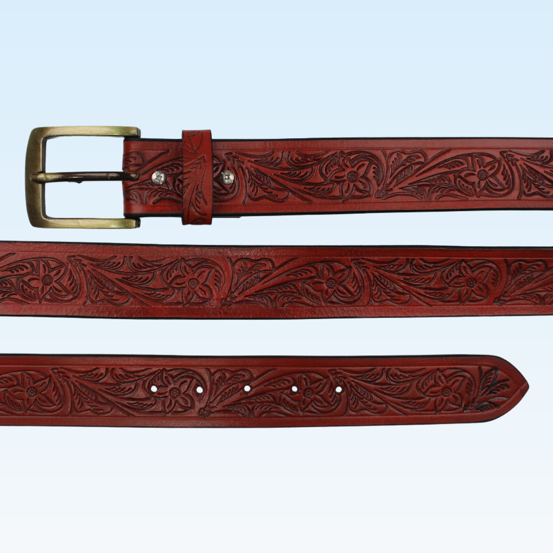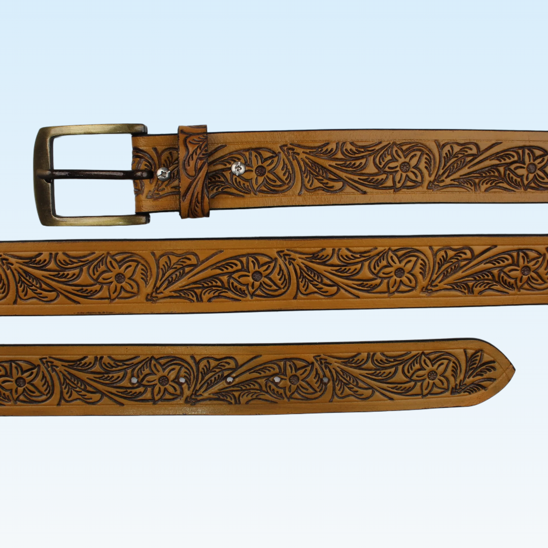 Genuine Leather belt for Men featuring high quality Metal buckle and Carved Leather strap. Formal, Casual...