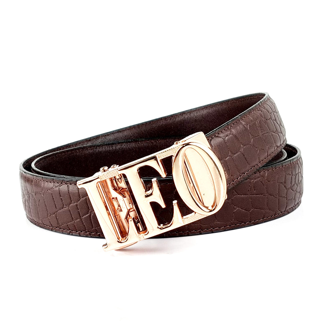 Hemener Men Leo Zodiac Buckle Genuine Leather Belt