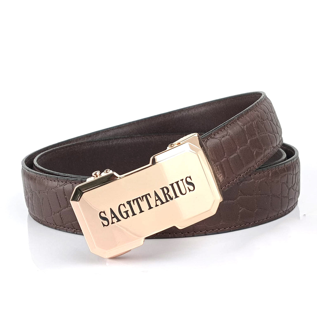 Hemener Men Sagittarius Zodiac Buckle Genuine Leather Belt