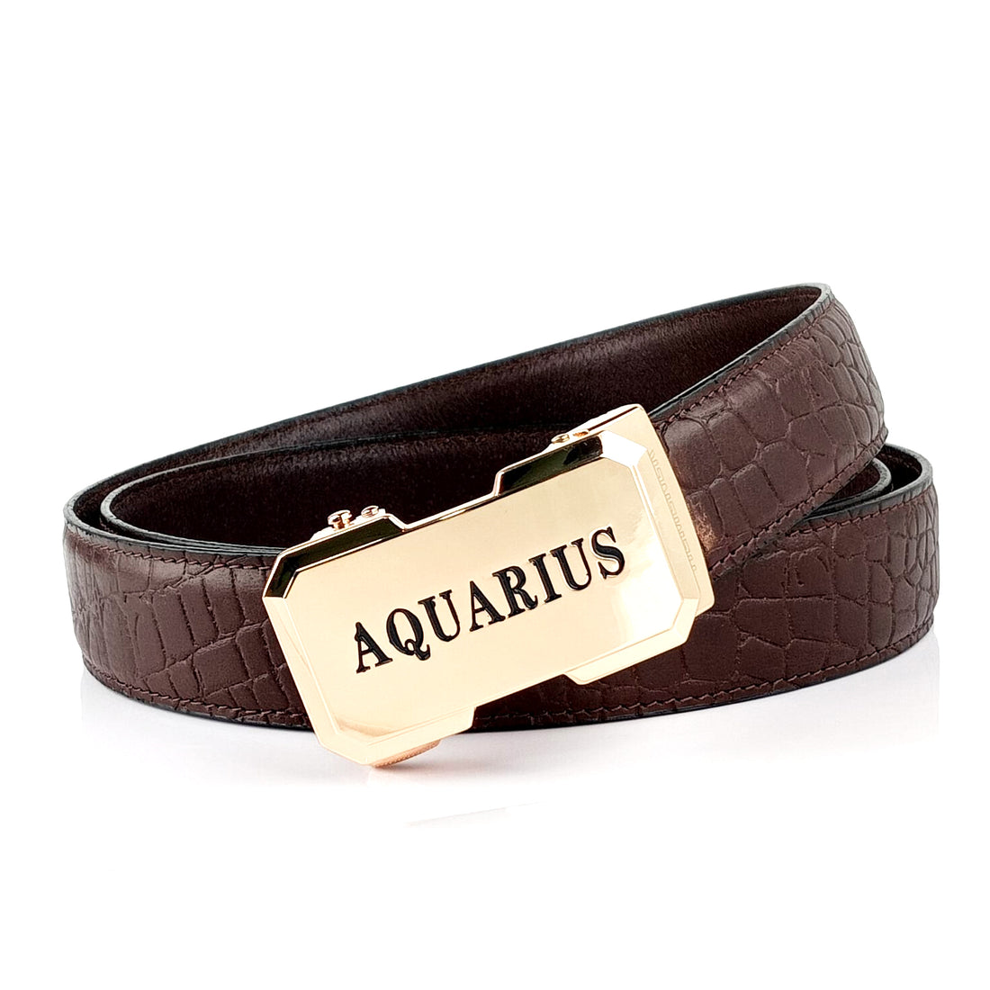 Hemener Men Aquarius Zodiac Buckle Genuine Leather Belt