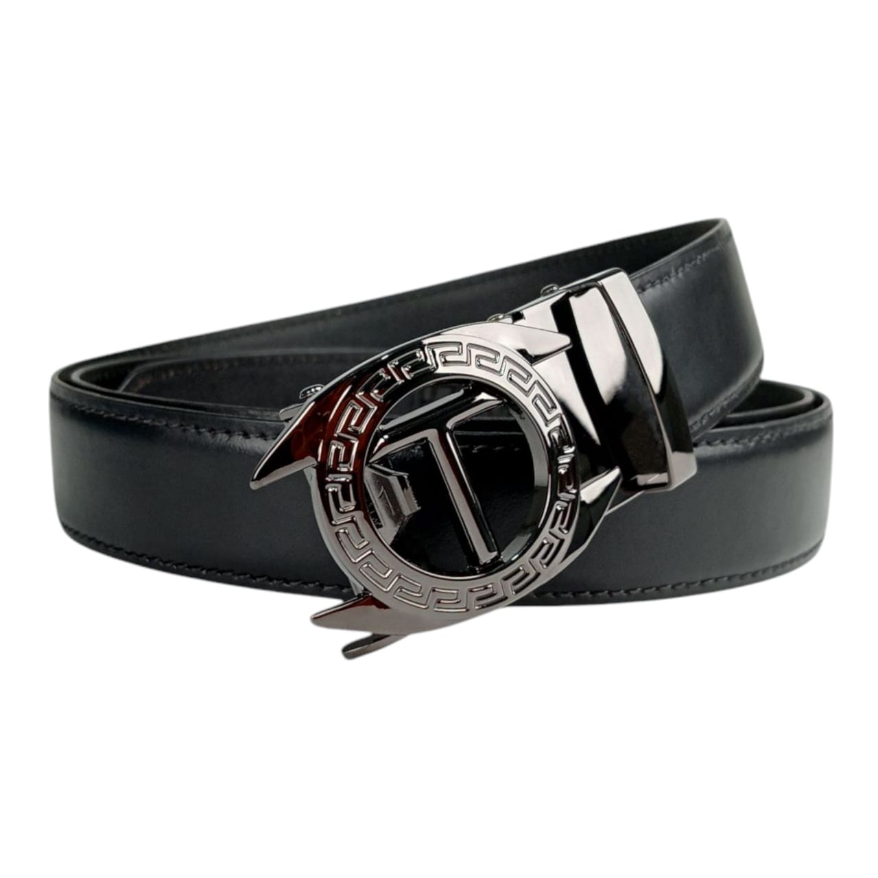 Hemener Genuine leather belt featuring high quality Metal auto grip buckle. Formal, casual and party wear belt. Strap length easily adjustable as buckle is removable/detachable.
