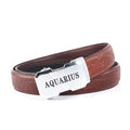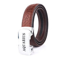 Hemener Men Aquarius Zodiac Buckle Genuine Leather Belt