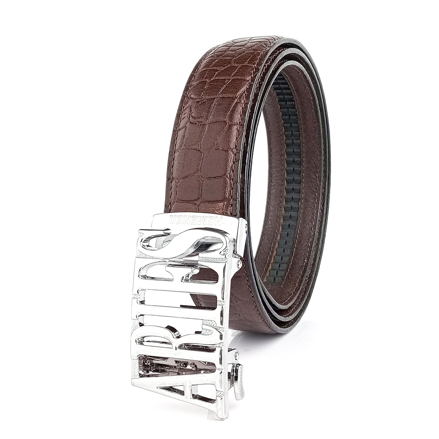 Hemener Men Aries Zodiac Buckle Genuine Leather Belt