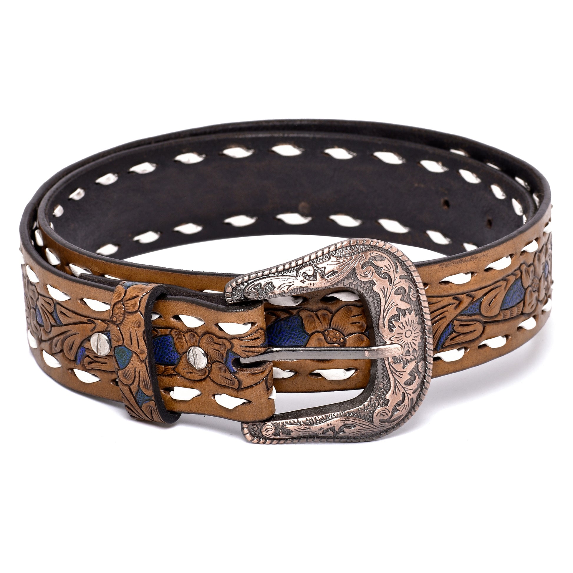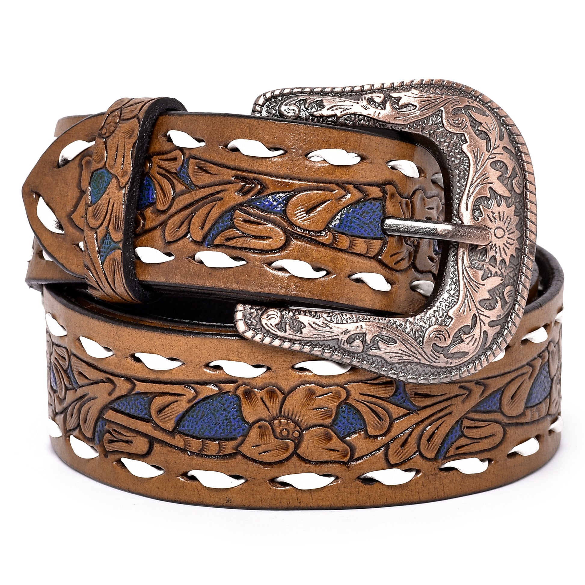 Genuine Leather belt for Men featuring high quality engraved Metal buckle and Carved Leather strap. Casual and Party wear belt.