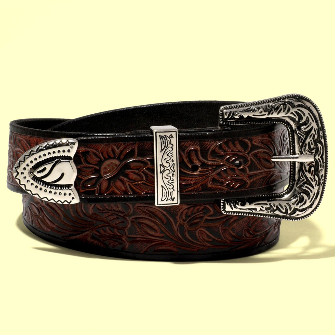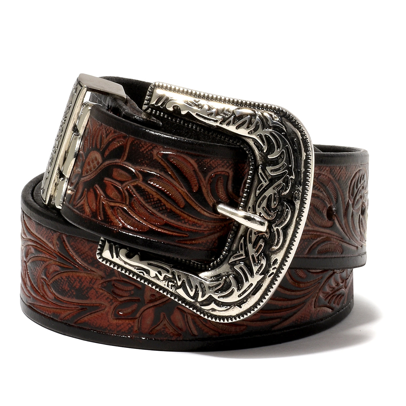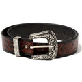 Genuine Leather belt for Men featuring high quality engraved Metal buckle and Carved Leather strap. Casual and Party wear belt.