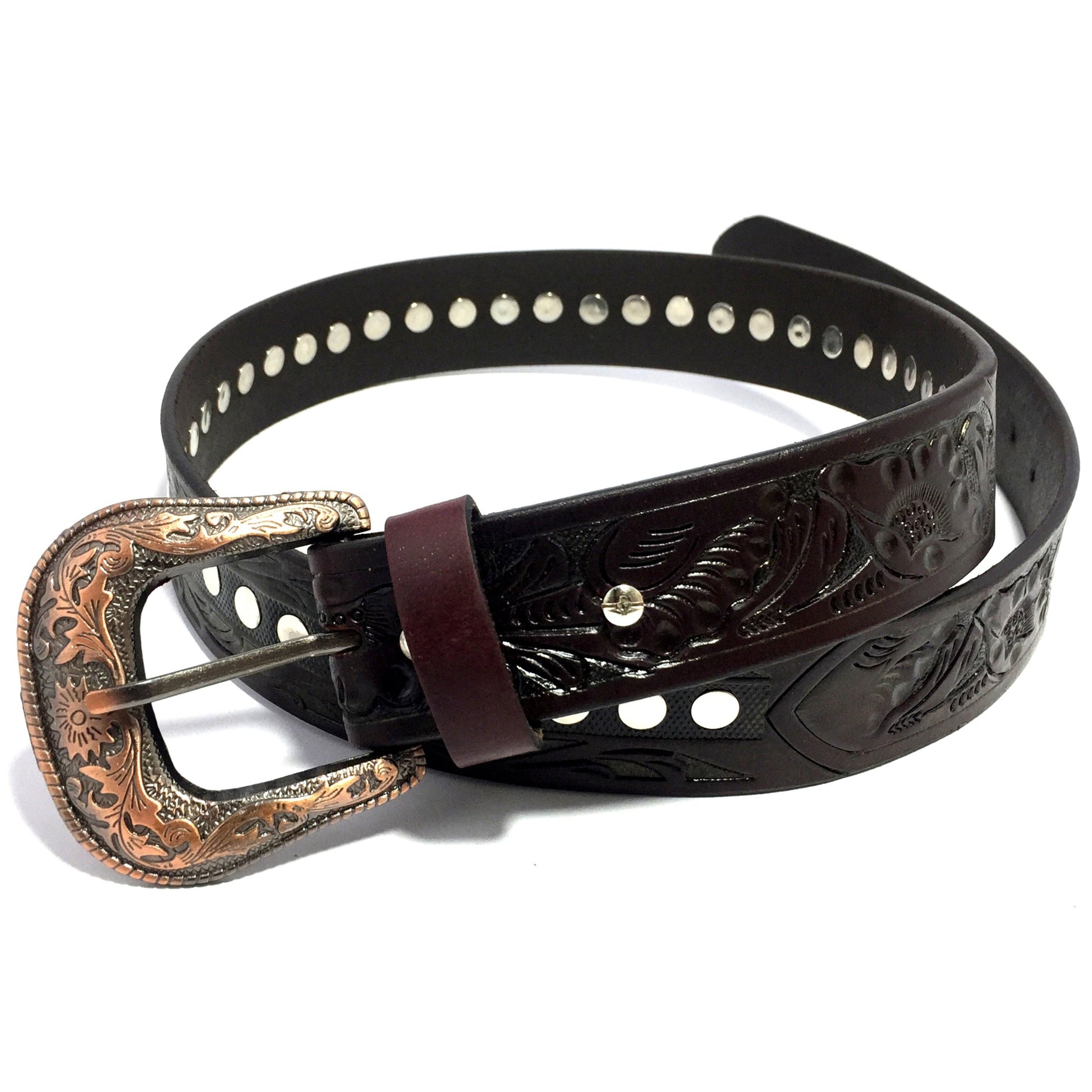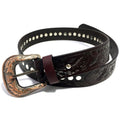 Genuine Leather belt for Men featuring high quality engraved Metal buckle and Carved Leather strap. Casual and Party wear belt.