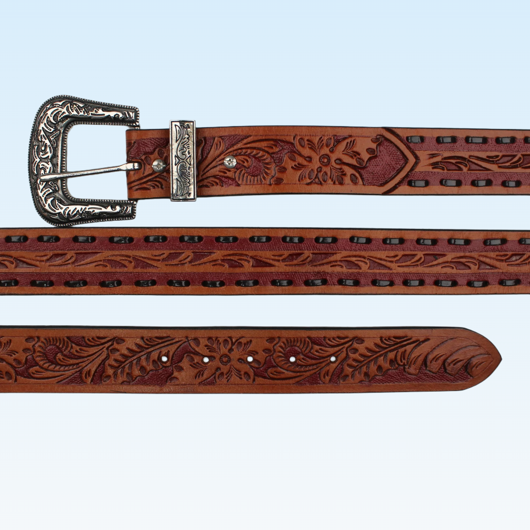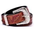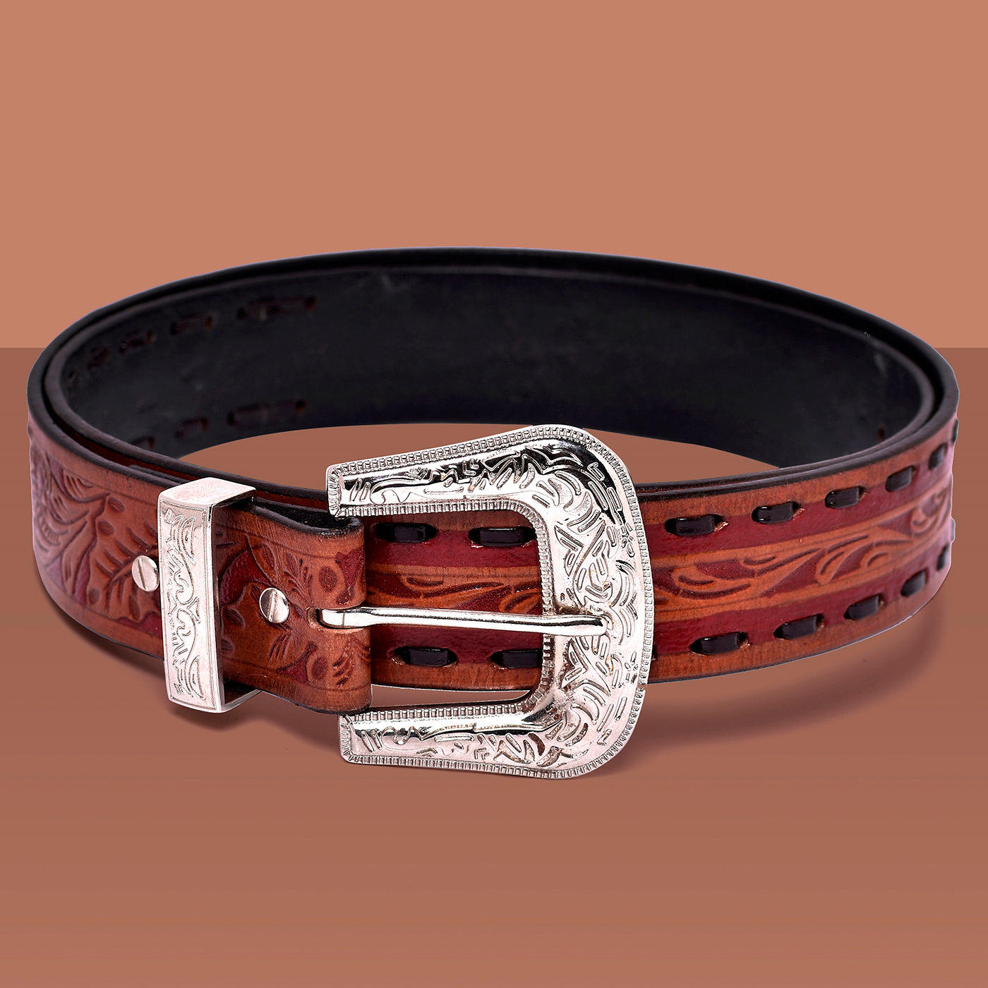 Genuine Leather belt for Men featuring high quality engraved Metal buckle and Carved Leather strap. Casual and Party wear belt.