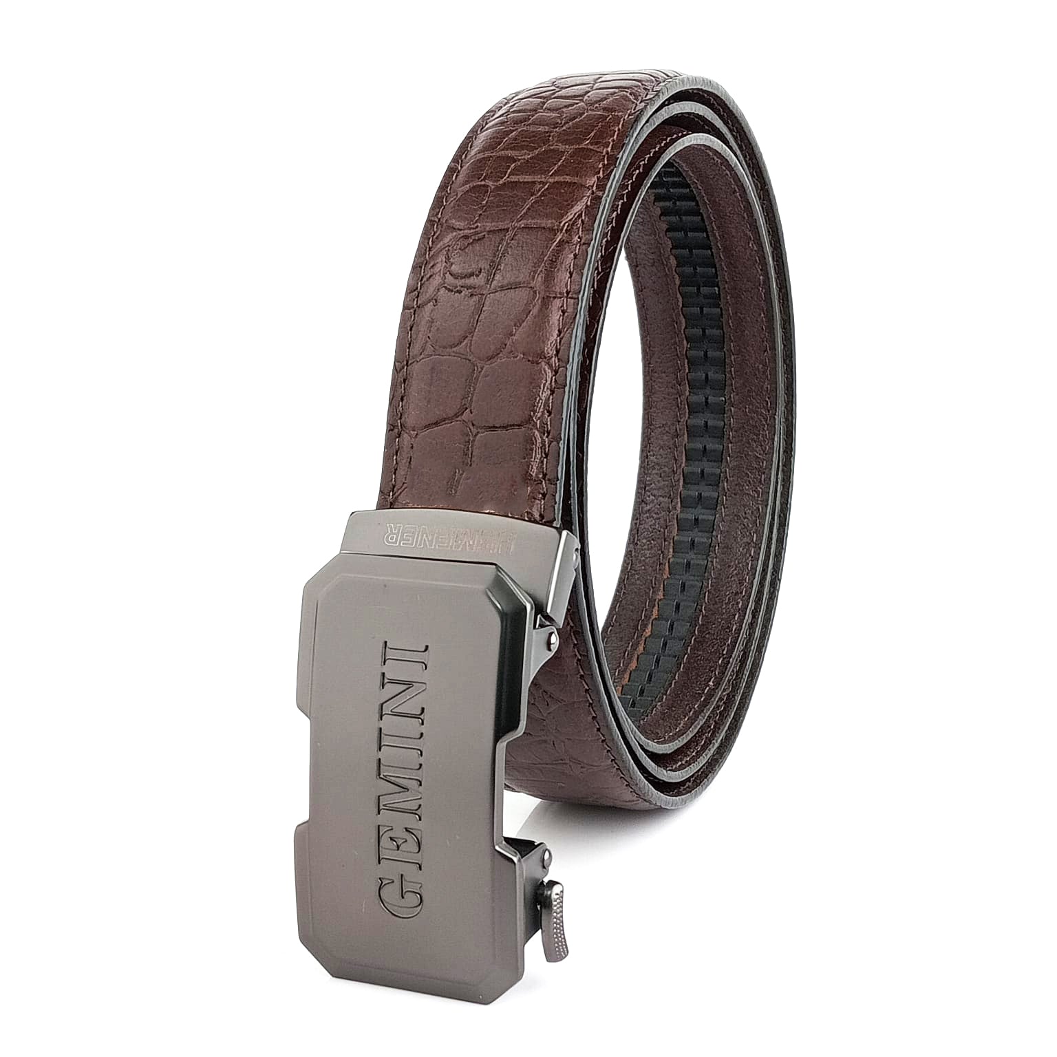 Hemener Men Gemini Zodiac Buckle Genuine Leather Belt
