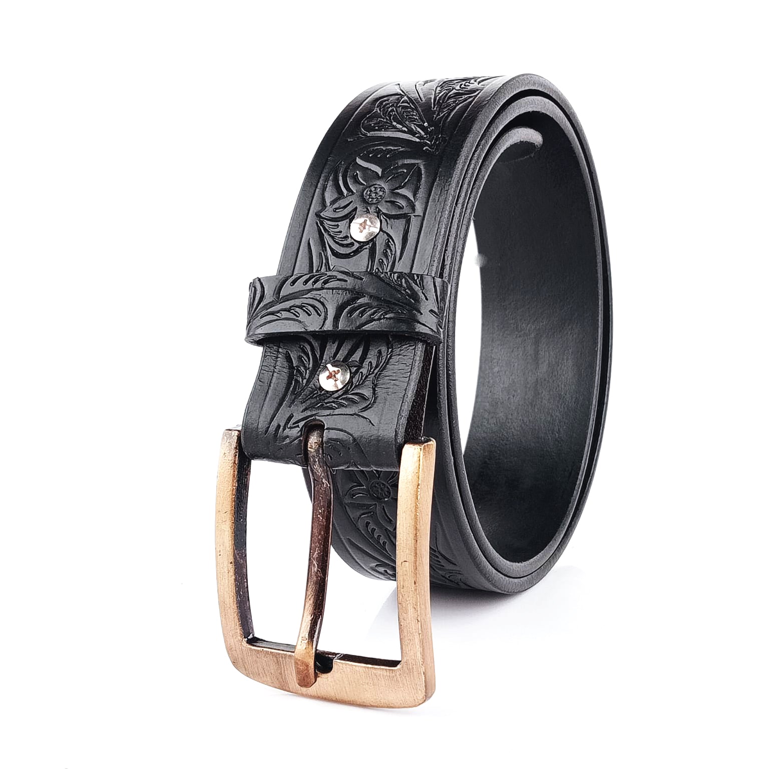 Genuine Leather belt for Men featuring high quality Metal buckle and Carved Leather strap. Formal, Casual and Party wear belt.